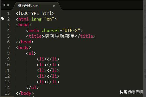 在<body>标签里新建一个<ul></ul>标签,然后在<ul>标签里添加几个<li></li>标签。如图: