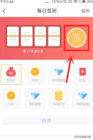 5、进入到每日签到这个页面中之后,在该页面的右上方位置找到签到这个图标选项,点击该选项就能够成功进行签到了。