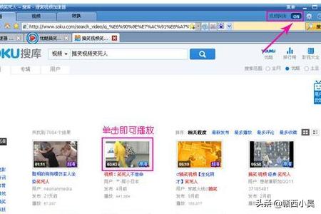 3、找到一个满意的搞笑视频短片之后就可以点击进入播放,这里要提醒大家的是,在软件右上方的视频探测处一定要是“ON”打开的状态,因为只有这样软件才可以探测到视频并下载。