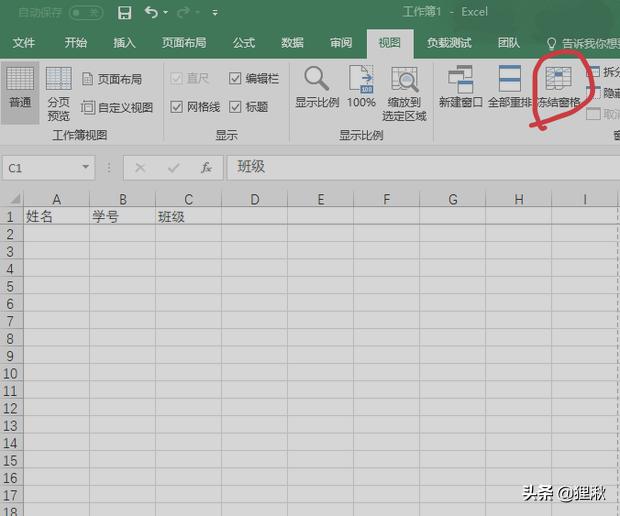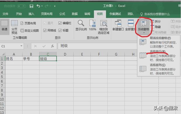2、选择冻结首行。可以看到一条不是很明显的分界线,就好了。