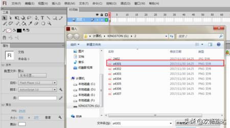 4.同样的,点击【文件】-【导入】-【导入到舞台】,点击小松鼠系列动作图片的第一张图片,点击【打开】最后点击【是】。