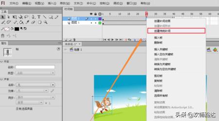 9.在图层二的两个关键帧之间点击右键,选择【创建传统补间】。