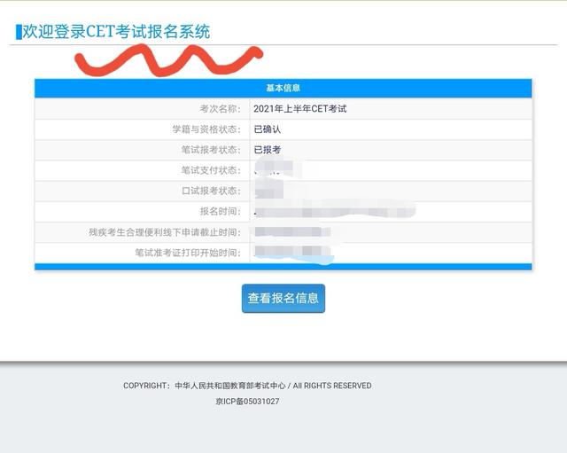 3、如果输入信息正确,对应考试的成绩信息将会在下一个页面列出。