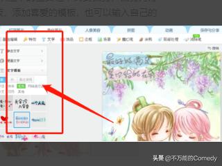 2、然后我们打开需要制作的图片,从左下的工具栏中找到裁剪,裁剪为方形,点确定,在左下找到文字模板,添加喜爱的模板,也可以输入自己的文字。