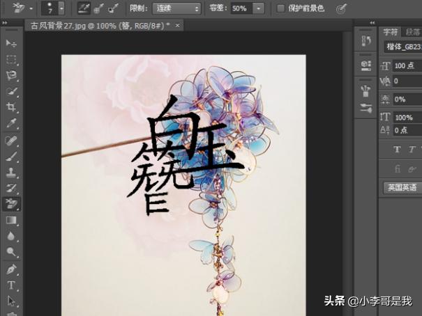 4、使用背景橡皮擦工具,将我们需要修改的文字的那一部分抹掉。