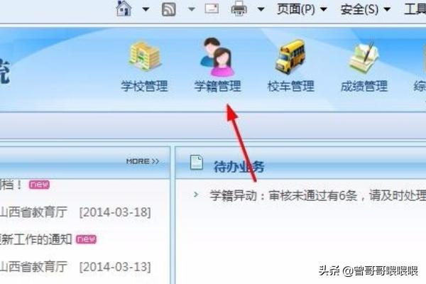 2.过入网站后,看上面“学籍管理”。