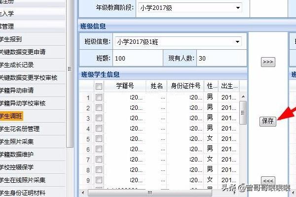 7.每班与每班调整完后记着点“保存”,否则无效。最好是调入几个学生就点“保存”,以免出现意外,前功尽弃。