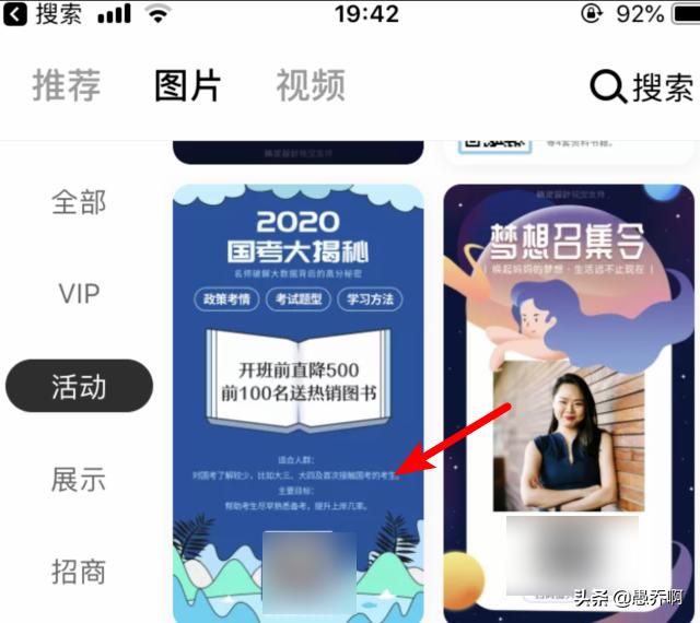 3、点击后,在左侧选择自己海报的用途,比如点击活动的分类进入。
