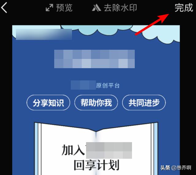 7、下载完毕后,将海报加载后,对海报里面的文字信息或图片进行修改,修改自己的内容后,点击右上方的完成。