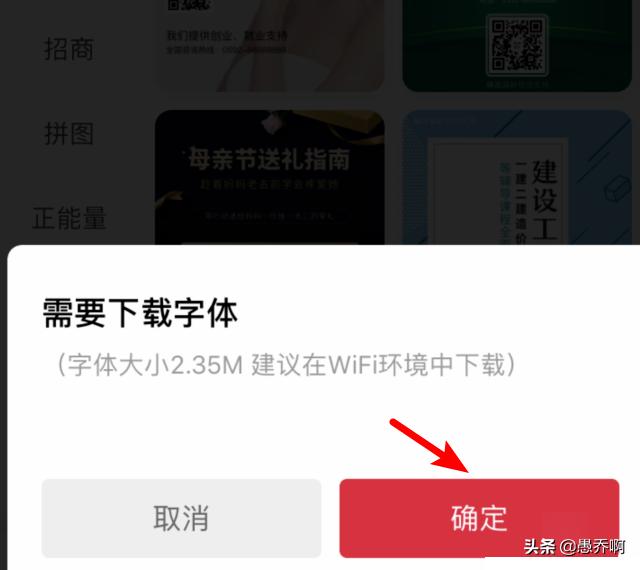 6、点击后如果海报里面的字体手机没有,需要下载字体,点击确定进行字体的下载。