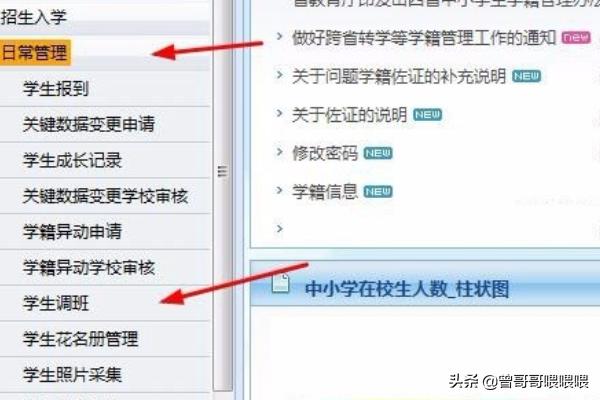 3.点击左边“日常管理”--“学生调班”。
